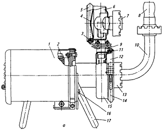 накидная гайка; 14 - зажимное кольцо; 15 - корпус; 16 - болт; 17 - опора; б-