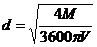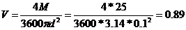 где М - расход продукта м3/ч.