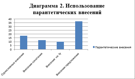 внесения-предложения. Так, из 100 примеров, 77 относятся к парантетическим