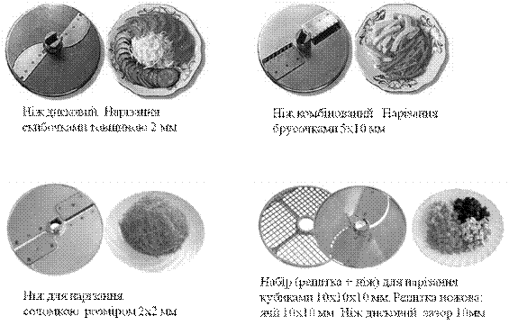 використовують овочерізальні машини і механізми для нарізки плодів і овочів