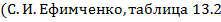 (К.В. Иогансен, таб. 6.23 с. 124 )