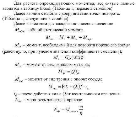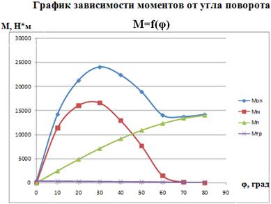 осуществлен расчет опрокидывающих моментов и построены графики зависимости