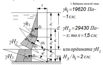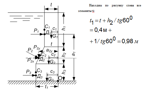 водоудерживающей стенки относительно ребра “О” при следующих данных: