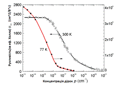 Рис. 1.6. Рухливість дірок в залежності від концентрації