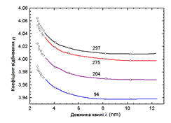 Рис. 1.8 Залежність показника заломлення від довжини хвилі