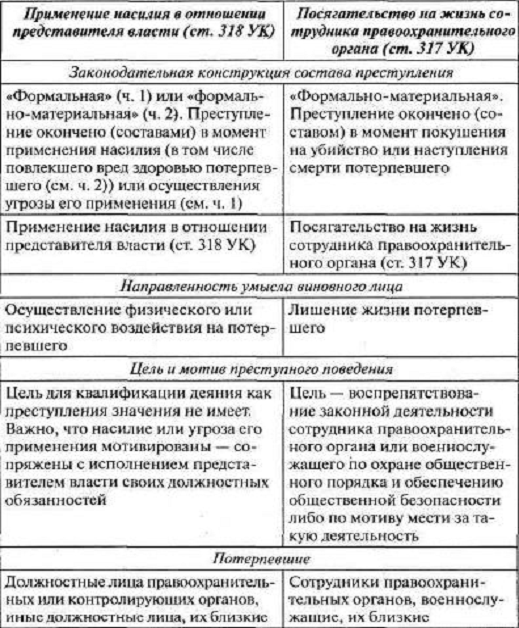 правоохранительного органа (ст. 317 УК РФ), применение насилия в отношении