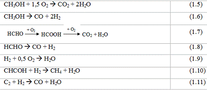 подальшого окиснення формальдегіду і його розпаду на окис вуглецю й водень: