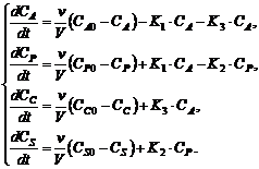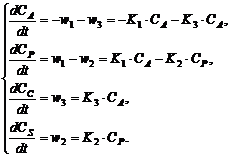 Враховуючи матрицю стехіометричних коефіцієнтів (4), складаємо систему
