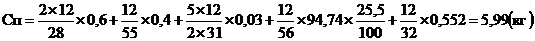 при расходе ПГ 90-100 м3/т и теоретической температуре горения