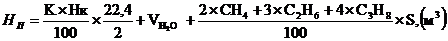 и теоретической температуре горения 1900-2000 °С - снижается на 0,3 кг/м3.