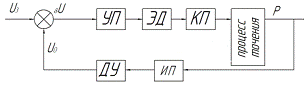 - от задающего сигнала U3 до составляющей Р силы резания и канал обратной связи