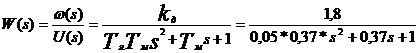 Двигатель: kд=1,8 рад/(с*В), Тя=0,05 с, Тм=0,37