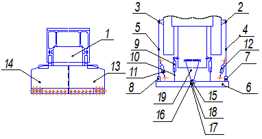 приладнано завдяки рамі на гусеничні теліжки трактора.