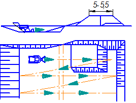 траншейно-полосною схемою з розробкою ґрунту по гребінчастій схемі розробляють