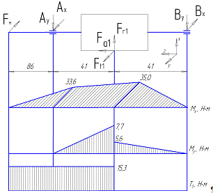 Рассмотрим сечение, проходящее под опорой D. Концентрация напряжений обусловлена подшипником посаженным