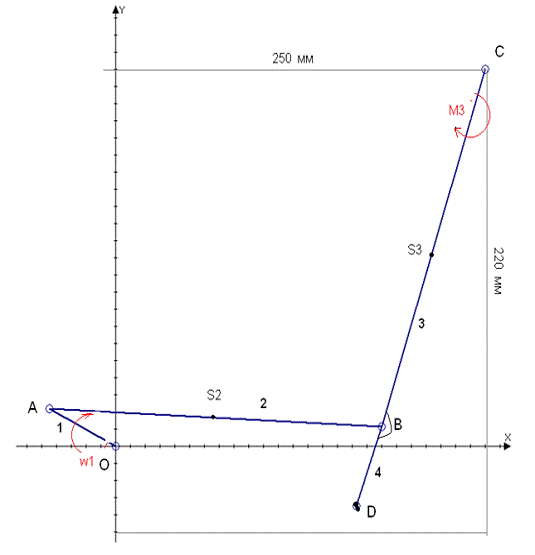 мм. соединяем отмеченные точки линиями, получаем схему механизма в заданном