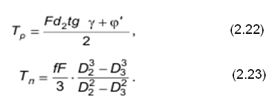 стальном винте и чугунной гайке со смазкой f = 0,05…0,15. Тр =