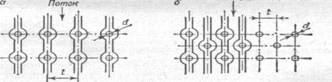Рисунок 1. - Поперечне обмивання пучка труб. а) коридорне розташування