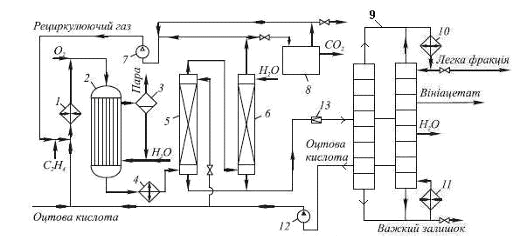 зводяться до наступного. Синтез вінілацетату здійснюється шляхом проходження