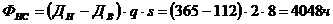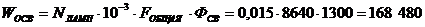Фсв=1300 - действительная световая нагрузка, ч. ([IV], стр. 380).