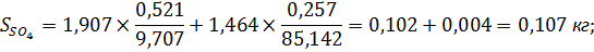 Масса общая - 9,707 кг. В ней Mo - 0,415. В ней SSO4 - 0,521.