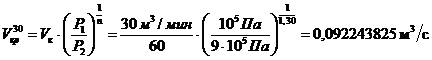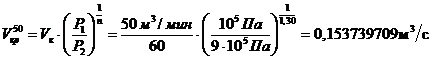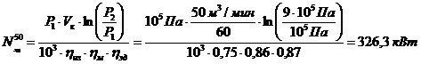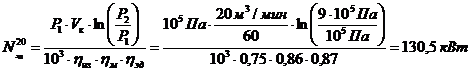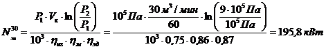 где: P1 - абсолютное давление всасывания, P2 - абсолютное давление нагнетания; Vк - производительность компрессора при условиях всасывания; ηиз - изотермический КПД; ηм - механический КПД; ηэд - КПД электродвигателя.