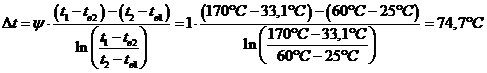 схемой движения сред. Температура воздуха t1 на входе в охладитель принимаем равной 170°С. Расход воды Vкх через охладитель выбирается исходя из нормы 3,0 литра на 1 м3/мин