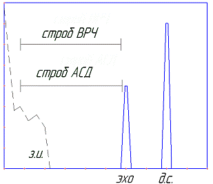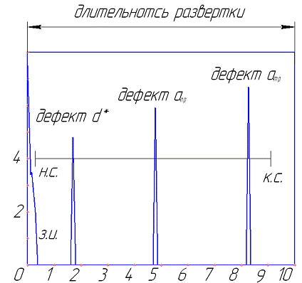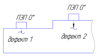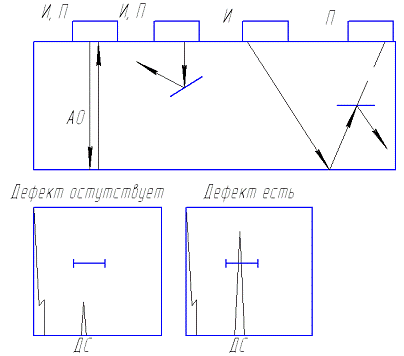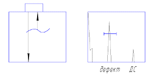 в случае перекрывания дефектом пучка УЗВ (ДС отсутствует);