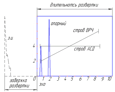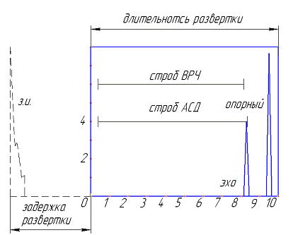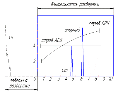 осциллограмма при определении амплитуды эхо-сигнала на ОК.