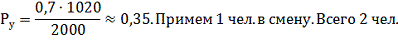 готовых деталей и готовых изделий примем численность рабочих по 2 человека на