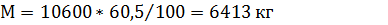 где М - масса мяса на кости, т;