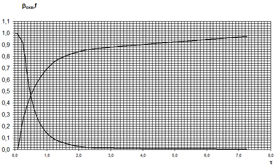 Рисунок 2. Зависимость доли нефти и коэффициента охвата от безразмерного