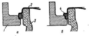 а - до закатывания; б - после закатывания; 1 -