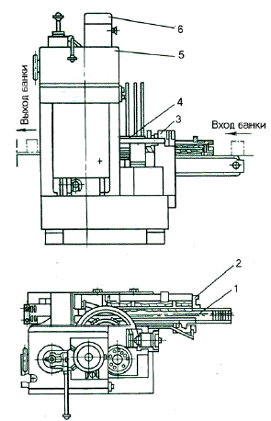 3-крышка; 4 - корпус банки; 5 - ролик первой операции; 6 - ролик второй