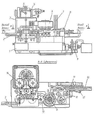 11- распределительный. Крышки подаются из магазина 7 и маркируются в маркере 8.