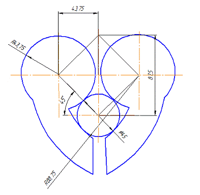 от оси поворота губки. Горизонтальная координата точек В и С определяется по