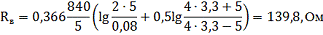 расчетное сопротивление растеканию тока в вертикальных заземлителях при их