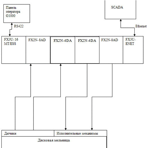 Рис.6 Блок схема связи ПТК на базе контроллера MITSUBISHI