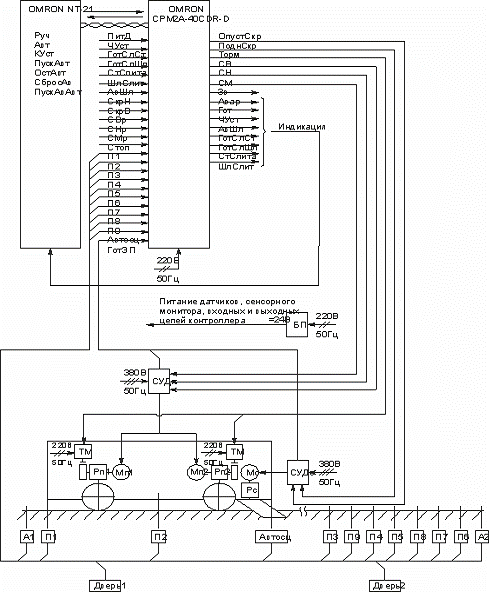 Система автоматизации выполнена на базе программируемого контроллера OMRON CPM2A-40CDR-A в совокупности с сенсорной панелью оператора OMRON NT21. Использование контроллера позволило сократить