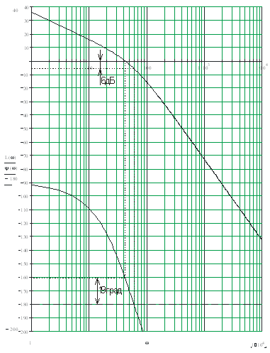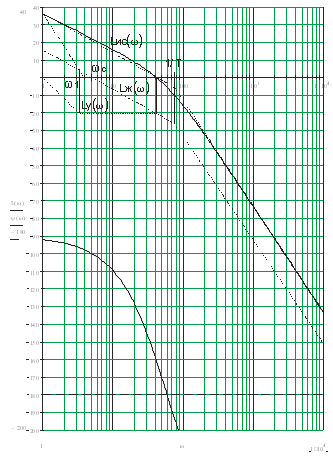 ординат желаемой ЛАЧХ (Lж(ω)) при одинаковых частотах,