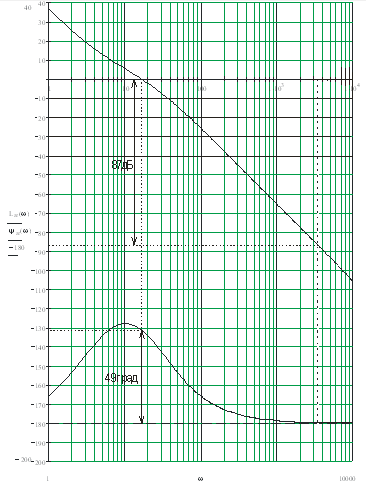 рисунке 9. Система обеспечивает запас по амплитуде 87 дБ и запас по фазе 49