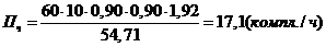 Пчi - часовая производительность линии, компл/ч;