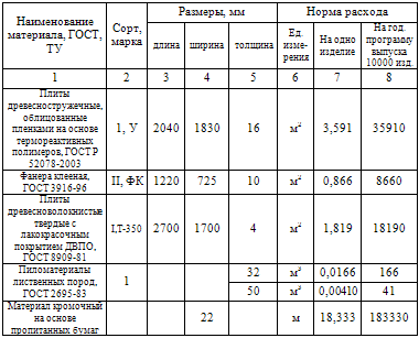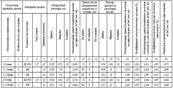 .1 Расчет норм расхода древесных и