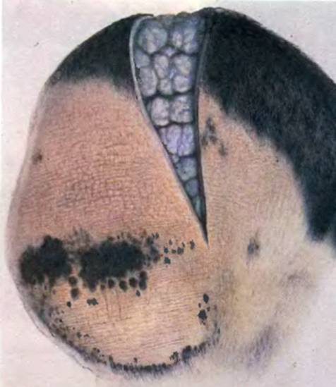 шерсть взъерошены, удаляются с трудом. Копыта без видимых изменений.