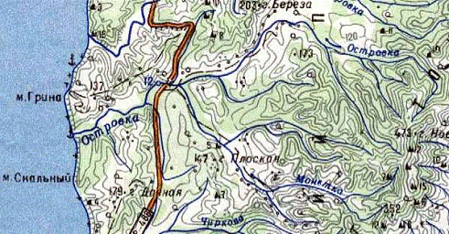 район) на реке Островка, впадающей в залив Анива, на расстояние 6 км от её
