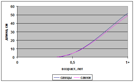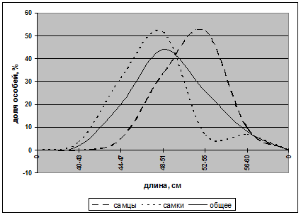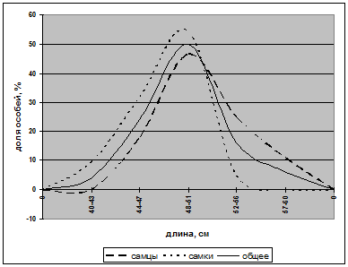 представлен особями от 43 до 59см. Модальный класс составили рыбы от 48 до 51см
