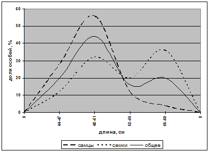 (44%); в 2008 году был представлен особями от 44 до 60см. Модальный класс