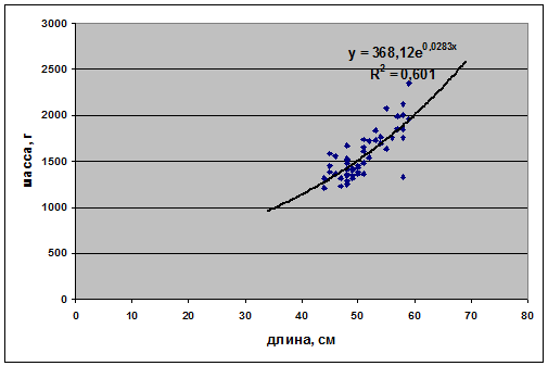 представлен особями от 882 до 2020г. Модальный класс составили рыбы массой от