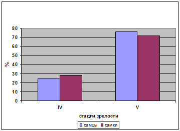 продуктов. На долю самцов в III стадии зрелости приходилось 28,5%, на долю самок
