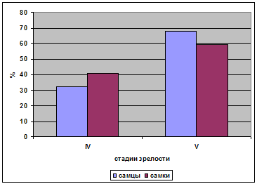 находившиеся в III, IV и V стадиях зрелости половых продуктов.
